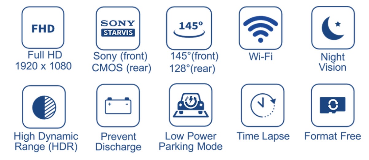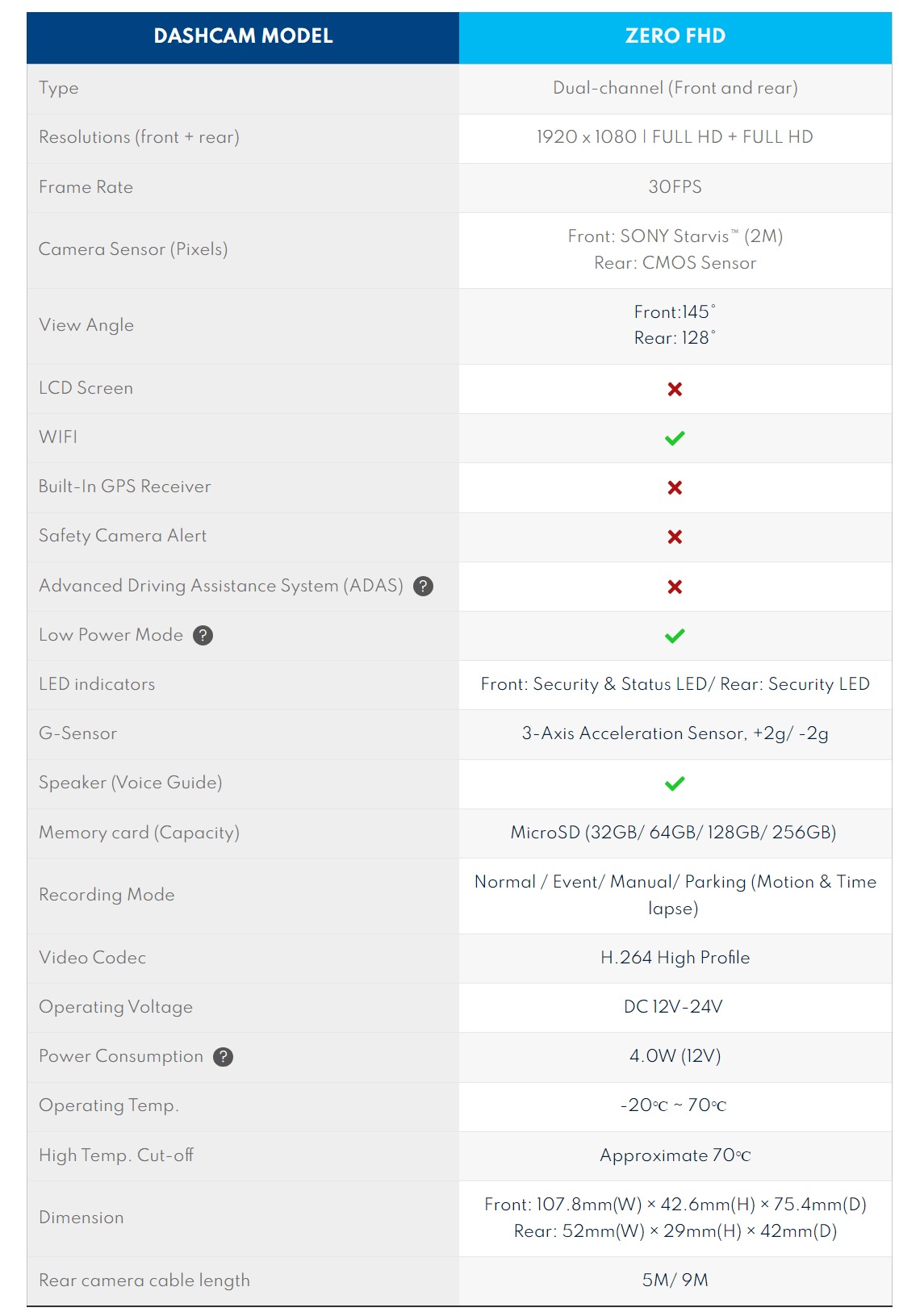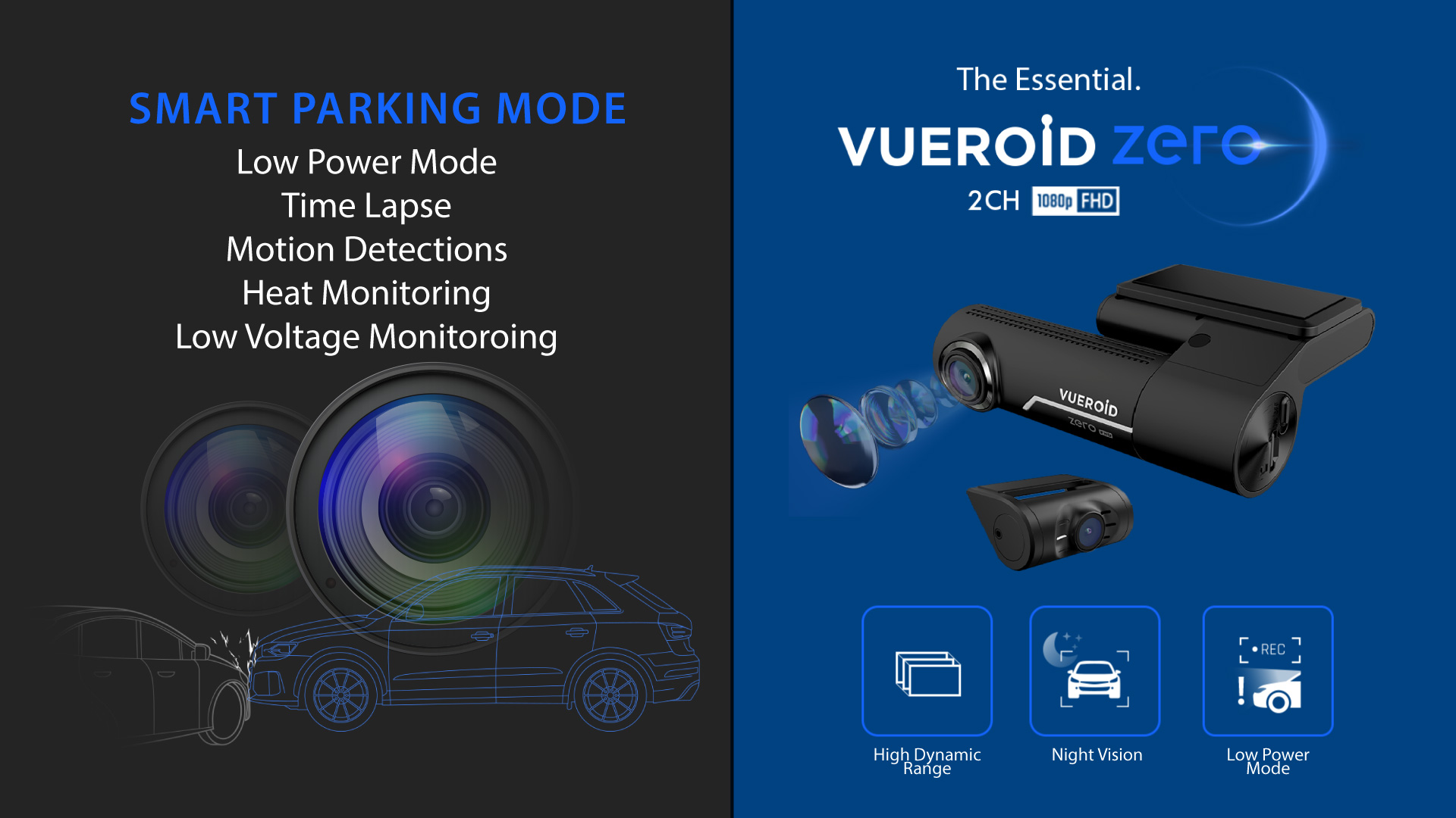 The VUEROID ZERO FHD is a basic dual-channel dashcam with Full HD resolution and equipped with SONY Starvis Image Sensor for the Front camera and CMOS sensor for Rear Camera. With High Dynamic Range (HDR), it produces clear video day and night even during the most challenging road conditions.